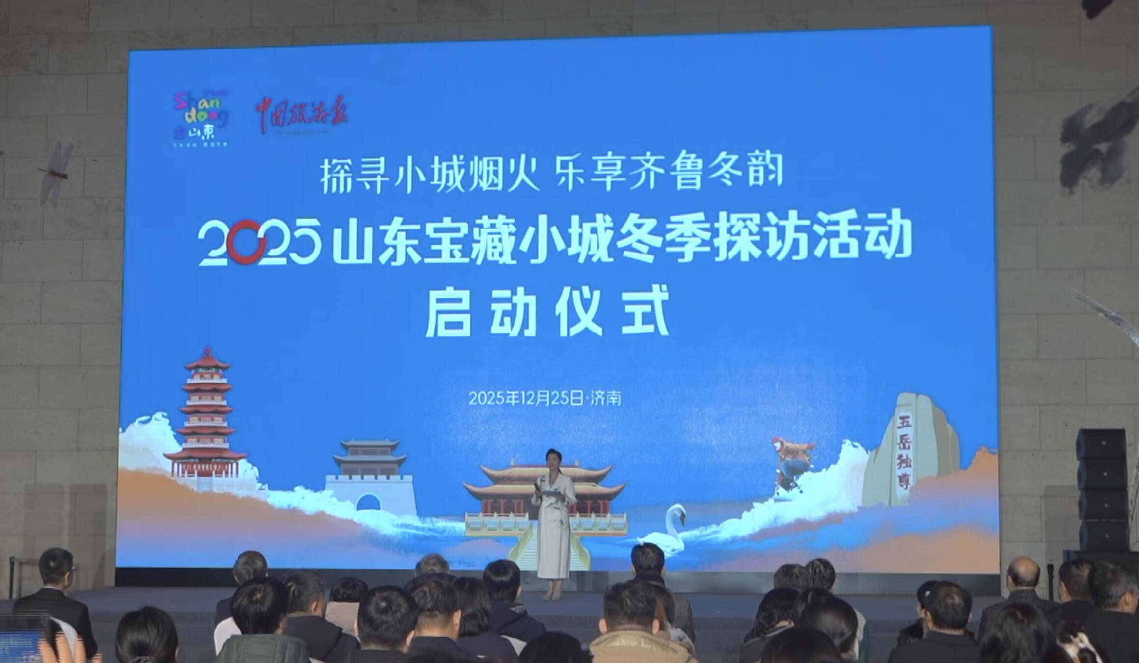 齐鲁网·闪电新闻12月26日讯 12月25日,“2025山东宝藏小城冬季探访活动”在山东美术馆启动。本次活动旨在挖掘全省冬季旅游资源潜力、创新产品供给,激活文旅消费市场,打造县城旅游品牌,进一步提升冬季旅游吸引力。山东省文化和旅游厅党组副书记、副厅长刘少华,中国旅游报社党委委员、策划总监李鹏冲,中国科学院地理科学与资源研究所研究员刘家明,清华大学文创发展研究院副秘书长李昶,中国传媒大学文化产业管理学院副教授熊海峰等领导、专家学者参加启动活动。