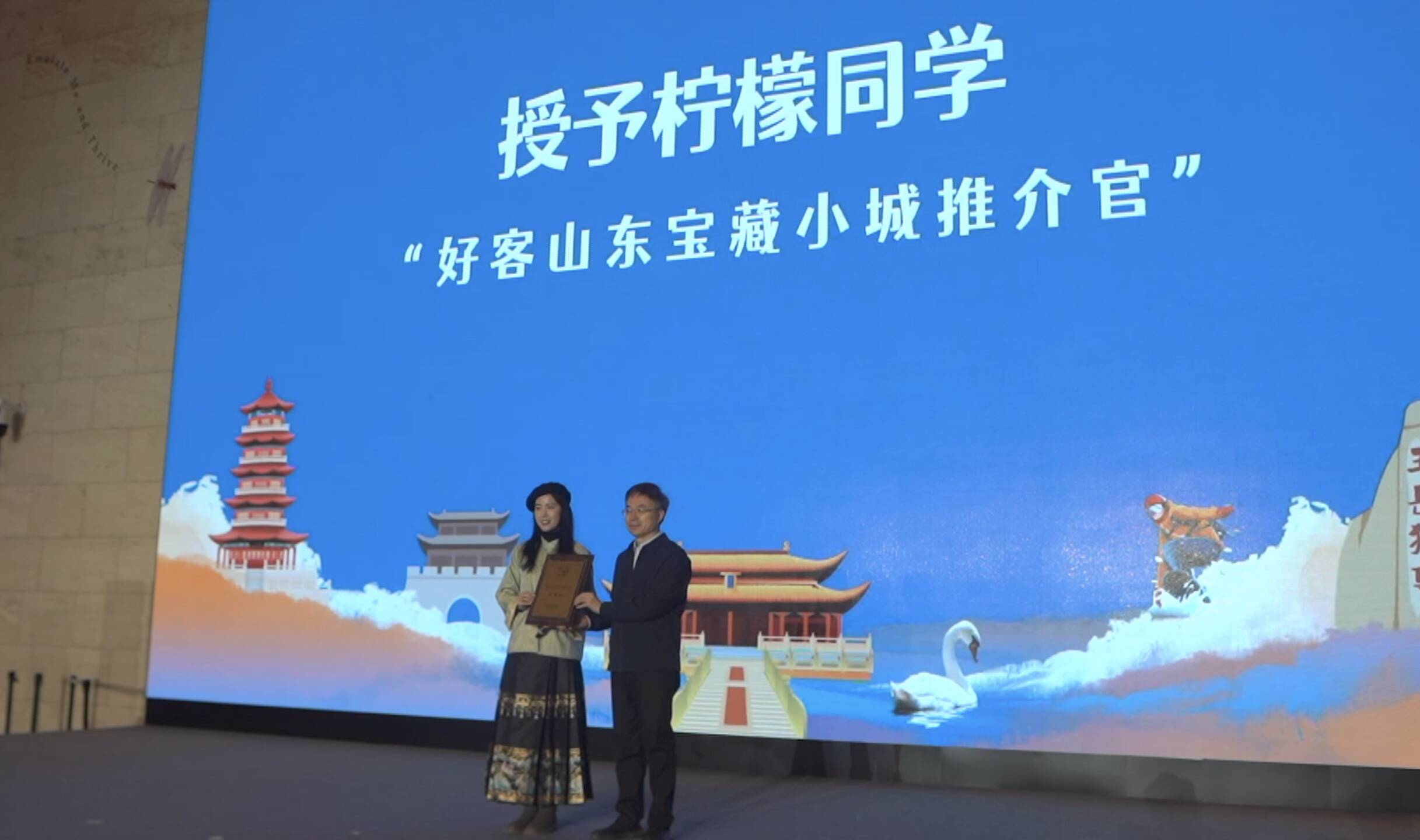 启动仪式上,文旅博主“柠檬同学”以其亲切生动的分享,展现了山东宝藏小城独具魅力的冬日风情,并为她颁发“好客山东宝藏小城推介官”,未来她将以全新视角助力齐鲁文旅品牌传播。宝藏小城章丘、青州、博山、东平、蓬莱、曲阜、荣成、临清登台推介,以创新形式展现冬日魅力。章丘用情景讲述解码李清照故里的人文温度;青州以山水诗画铺陈千年古城底蕴;博山通过齐鲁风情展现好客之道;东平借雪覆湖湾重现宋韵年俗;蓬莱营造雪海交织的浪漫意境;曲阜、荣成以曲艺连唱串联圣城与滨海冬趣,临清则以烟火民谣唱响小城温情。音乐、戏剧、光影等多维艺术形式相融,立体呈现好品山东冬季文旅的多元魅力,为全国游客奉上丰富的“冬日旅行清单”。